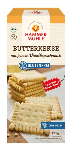 Glutenfreie Bio Butterkekse mit feinem Vanillegeschmack von Hammermühle.
