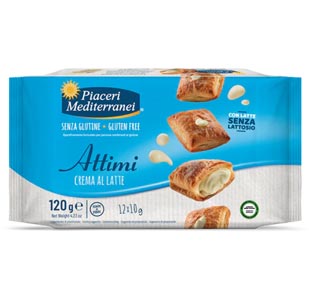Attimi crema al latte von Piaceri Mediterranei sind Blätterteigtaschen mit Milchcremefüllung.