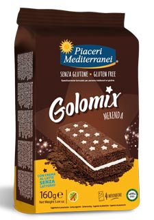 Golomix Merenda von Piaceri Mediterranei sind glutenfreie Kakao-Biskuitkuchen mit einer köstlichen, laktosefreien Milchcremefüllung und mit Zuckersternen dekoriert.