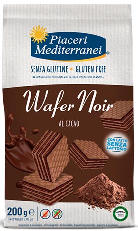 Glutenfreie Kakaowaffeln Wafer Noir al Cacao von Piaceri Mediterranei.