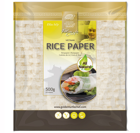 Das glutenfreie Reispapier viereckig von Golden Turtle for Chefs™ wird aus Reis hergestellt, der in der fruchtbaren südlichen Deltaregion von Vietnam angebaut wird.