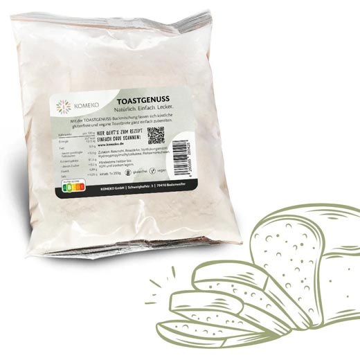Glutenfreie Toastbrot Backmischung Toastgenuss von Komeko. Mit dieser Backmischung gelingt Ihnen ein frisch gebackenes Toastbrot – glutenfrei und vegan!