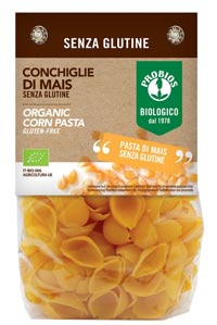 Bio Maisnudeln Conchiglie von Probios. Glutenfreie Maisnudeln in Form von Muscheln mit hervorragender Bissfestigkeit. Kochzeit 11/12 Minuten.