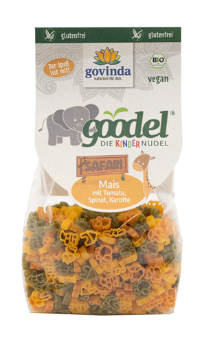 Bio Kindernudel von Govinda. Glutenfreie Kindernudel mit Tierformen aus ganz Afrika.
