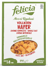 Bio Vollkorn-Hafer Mezzi Rigatoni von Felicia sind köstliche glutenfreie Nudeln aus Vollkornhafer. Italienische Pasta in Spitzenqualität.